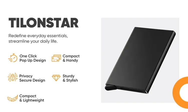 محفظة TILONSTAR تعيد تعريف الأساسيات اليومية بأسلوب أنيق وعملي. بتصميم Pop-Up بلمسة وحدة، تقدر تطلع بطاقاتك بسرعة وسهولة، وهي بحجم مدمج وخفيف يناسب جيبك أو شنطتك بدون ما ياخذ مساحة